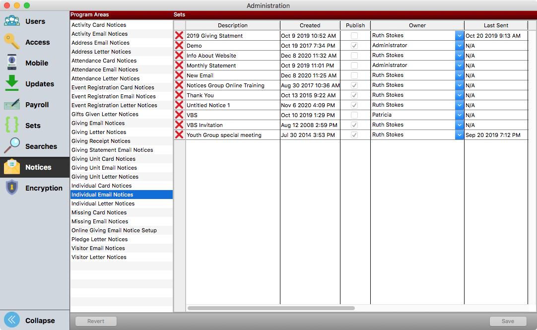 To delete a notice, click the red X, and then click Save.
