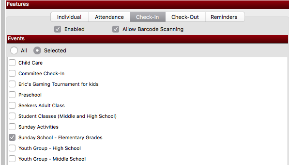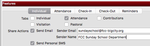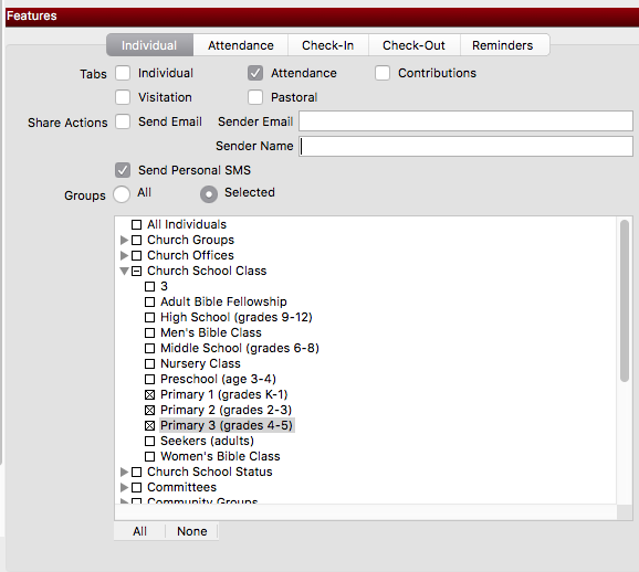 Allows you to customize a device for only certain features (such as Attendance entry for specific classes, Pastor's access to Visitation and Pastoral notes, youth minister's phone to send texts to youth group, tablets set up for self Check-In, tablets used as kiosks for barcode attendance)