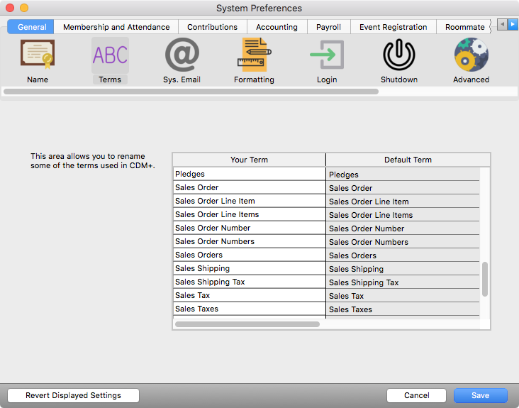 Just like you can change many of the terms in the other programs of CDM+, Sales Orders allows you to customize terms to fit your needs. Some of the terms you can change include: