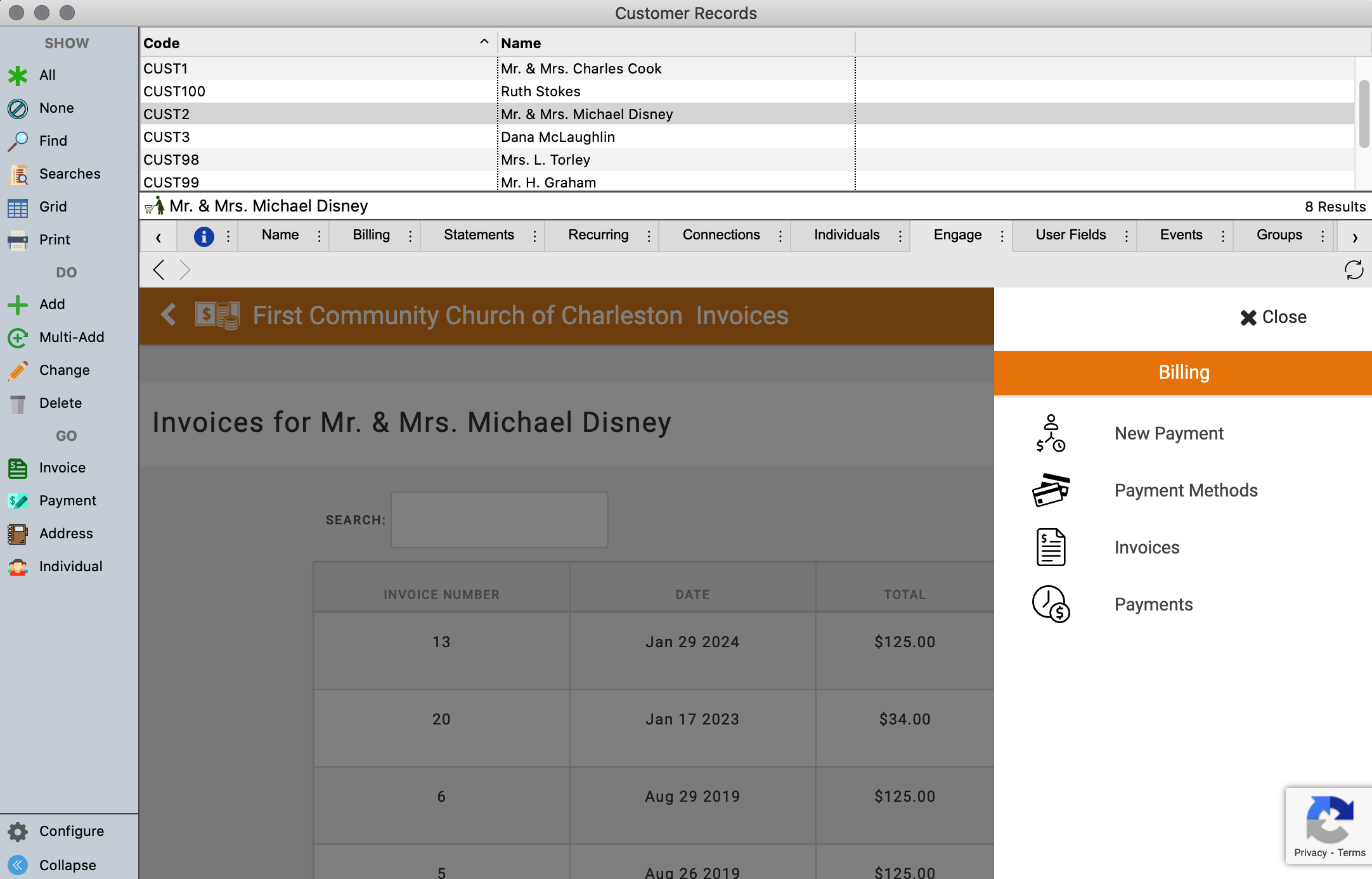 This feature allows you to access a customer's Engage Account. With their permission, you can make a payment for them, add payment methods, and view both Invoices and payments.