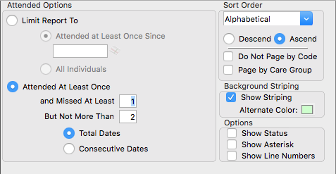 Again, this report setup window is similar to the other Attendance Listing reports. The difference here is the Attended Options.