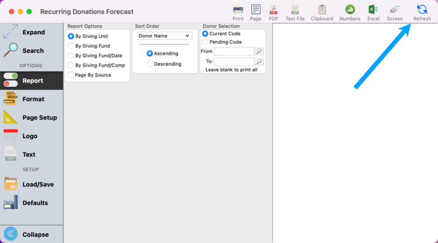 How to print a Donation Forecast Report