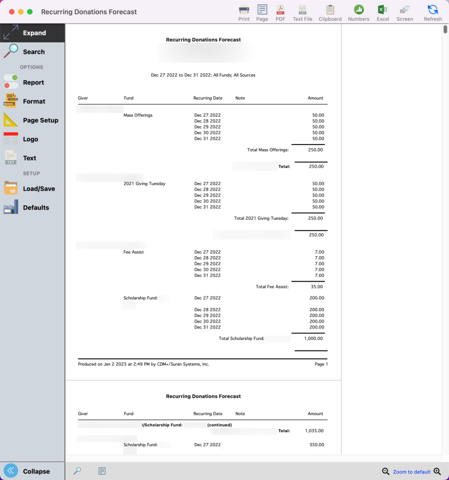 - Open Recurring Donations Forecast Report (Reports→ Donation Reports→ Recurring Donations→ Recurring Donations Forecast)