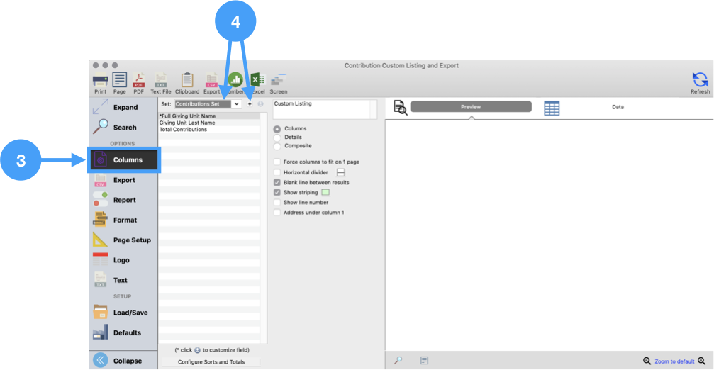 How to print or export contribution reports using the Contribution Custom Listing and Export Report
