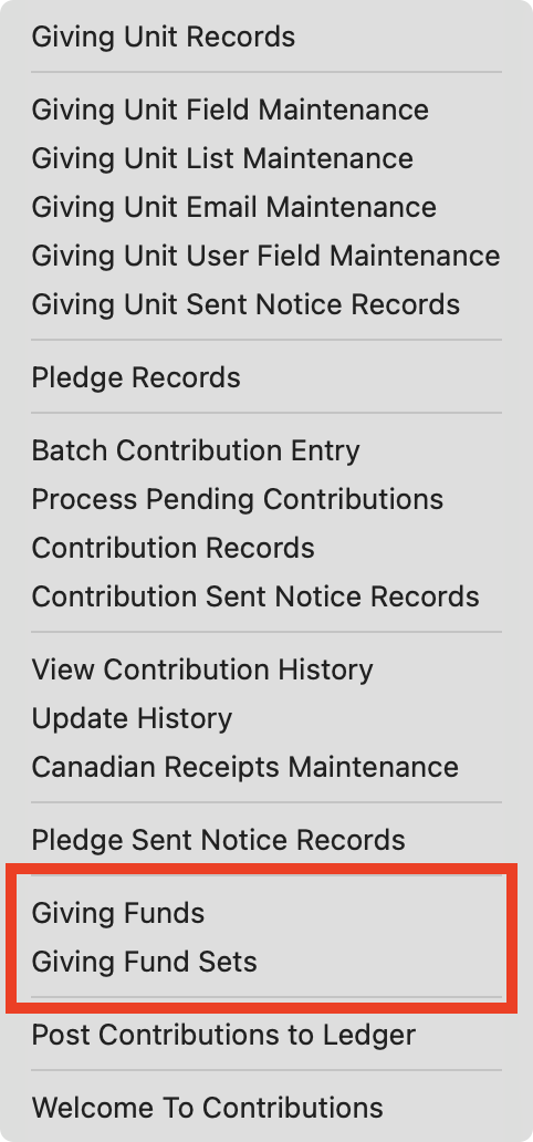 Giving Funds | Contributions Menu |