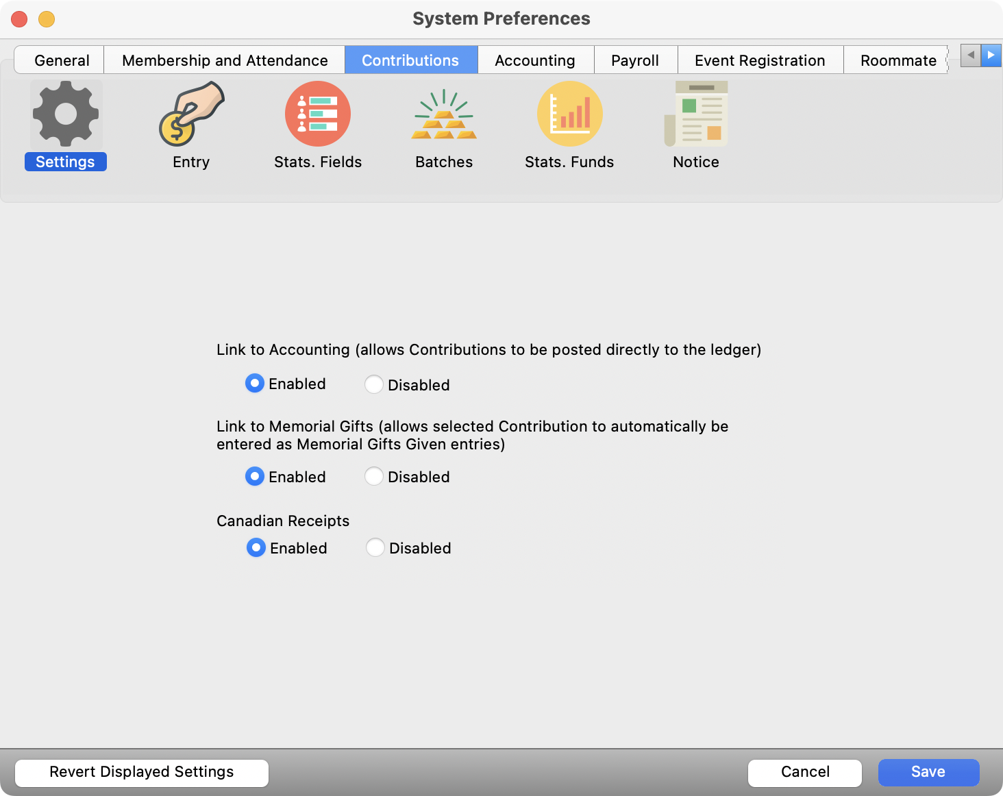 Link to Memorial Gifts | System Preferences |