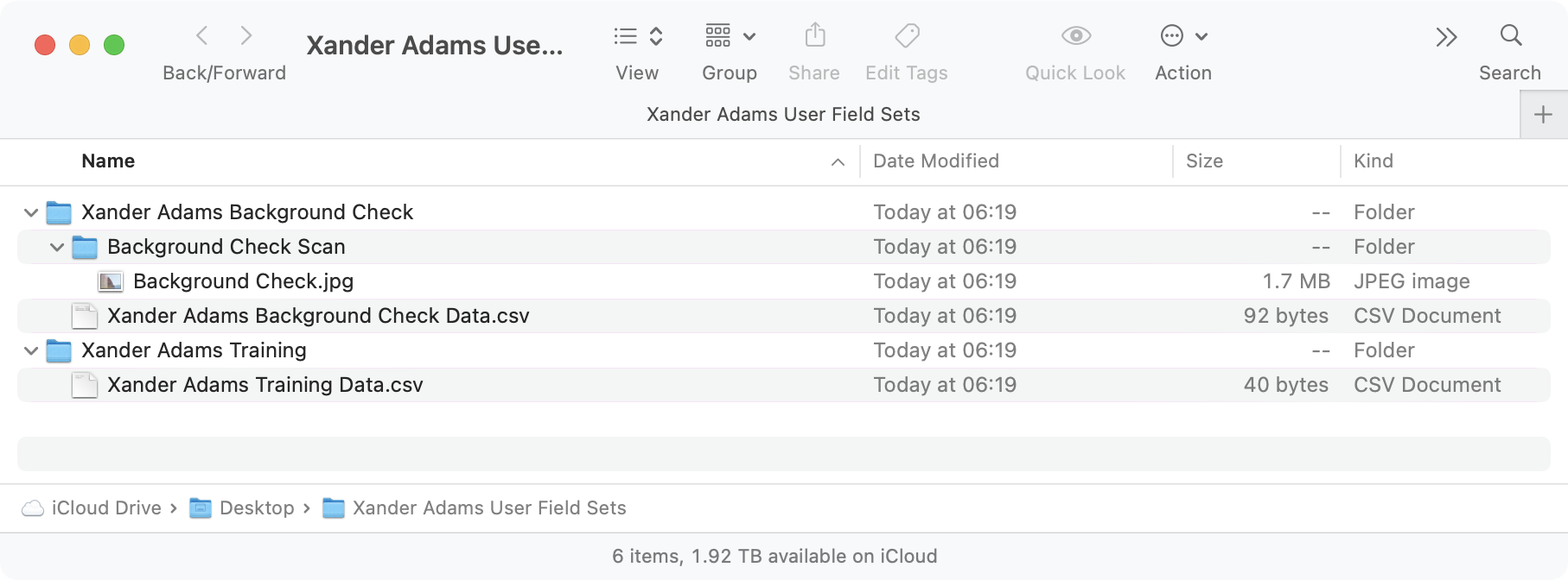 A zip file will be created with .csv files for data fields and files for raw data fields.