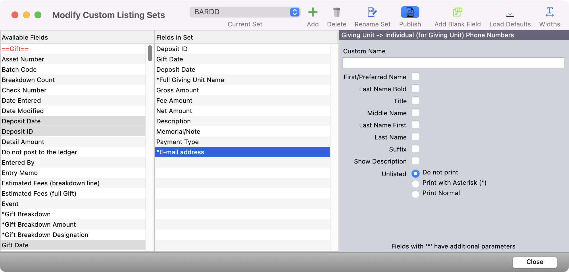 You can include the giving unit's preferred email as set in CDM+ Engage on windows and reports via the Default Email field.