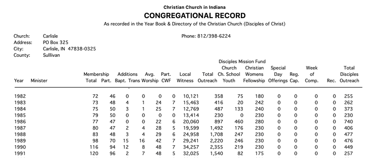 CDM+ Regional for Disciples of Christ maintains congregation statistics from the Year Book and Directory on each congregations Church Record. Year Book data is prepared by the Office of the General Minister and President and then available for download to Regional databases.