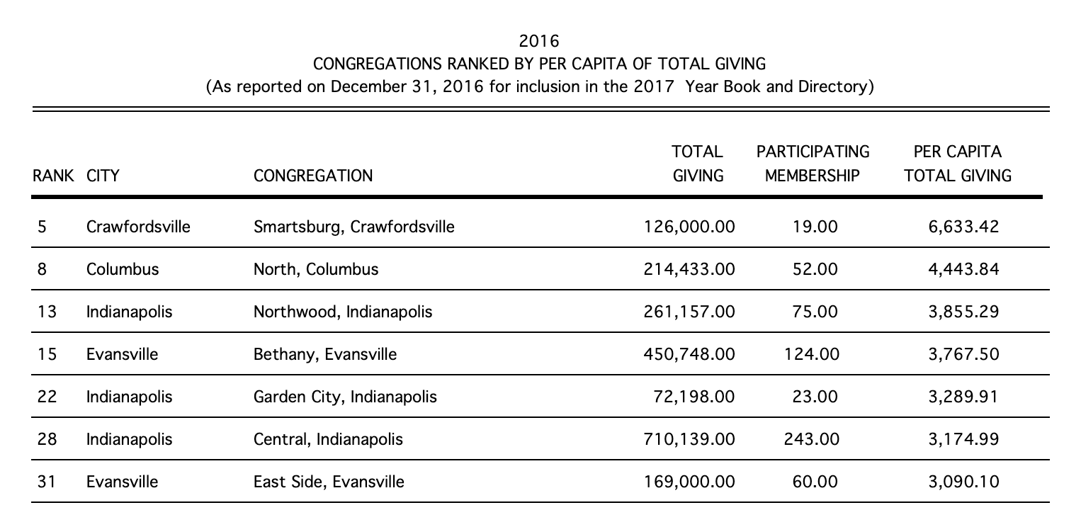 Ranking provides the rank among all congregations, not just the region, for key Year Book statistics.