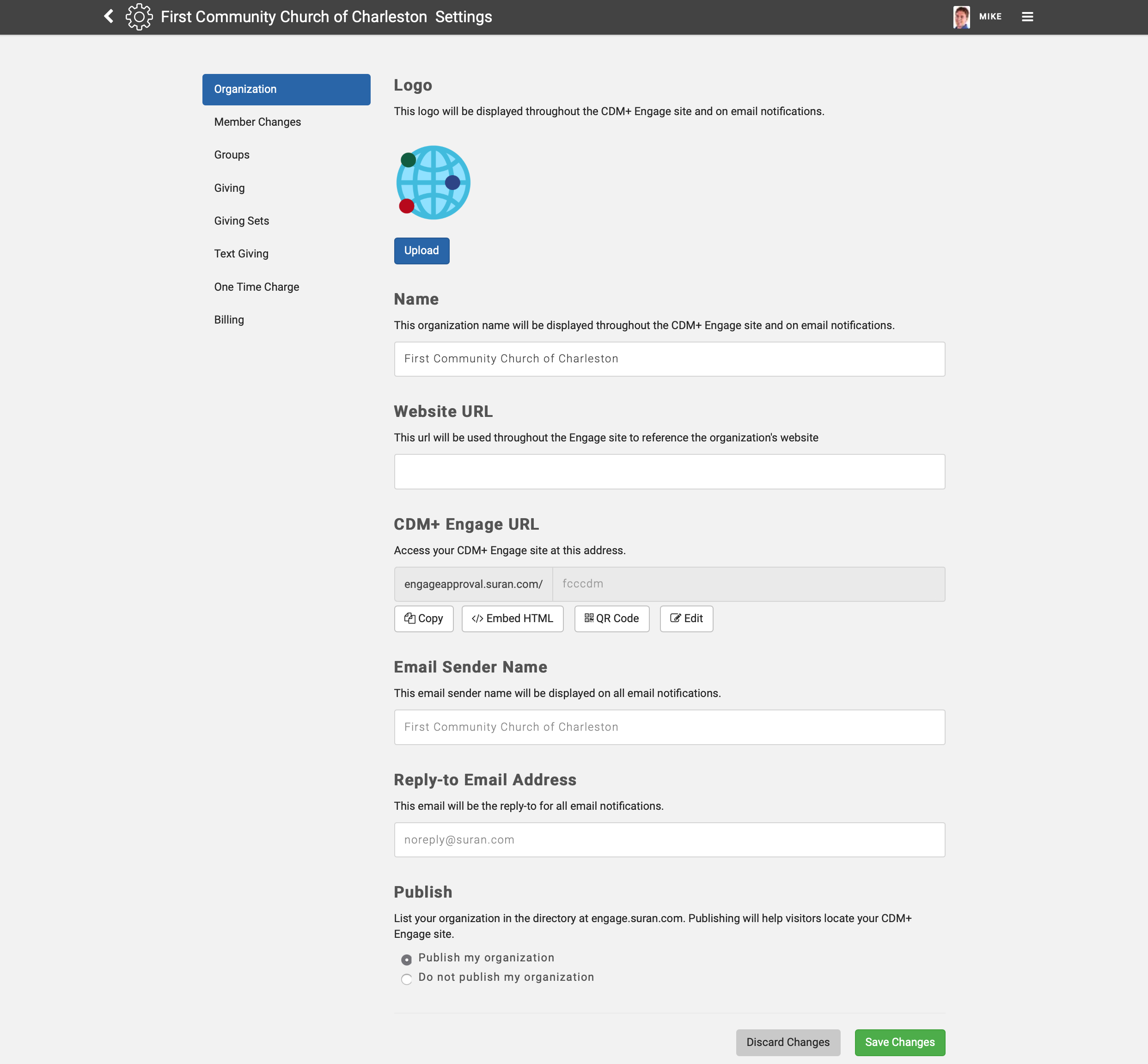 Engage Organization Settings