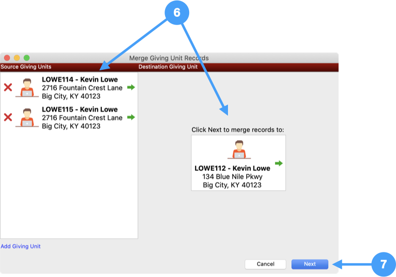 However, if there are existing address, giving unit, or individual records for this giver, you may now have duplicate records in CDM+. Follow this guide to process the new records in your CDM+ database to remove any duplicates and update record links so the giver can continue to give online while preserving the integrity of your CDM+ database.