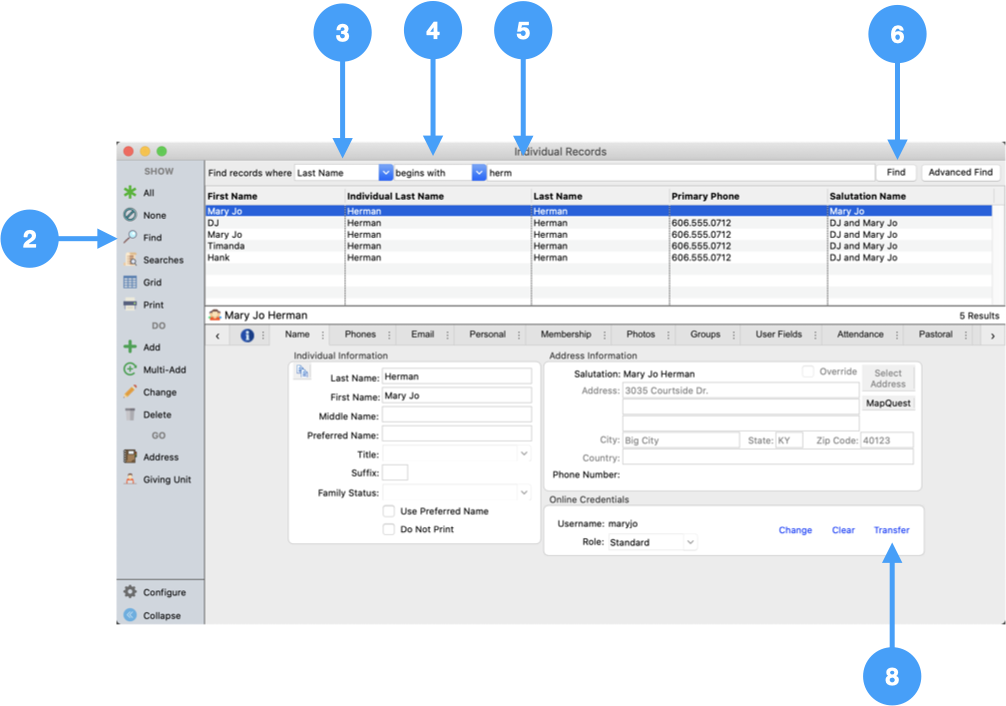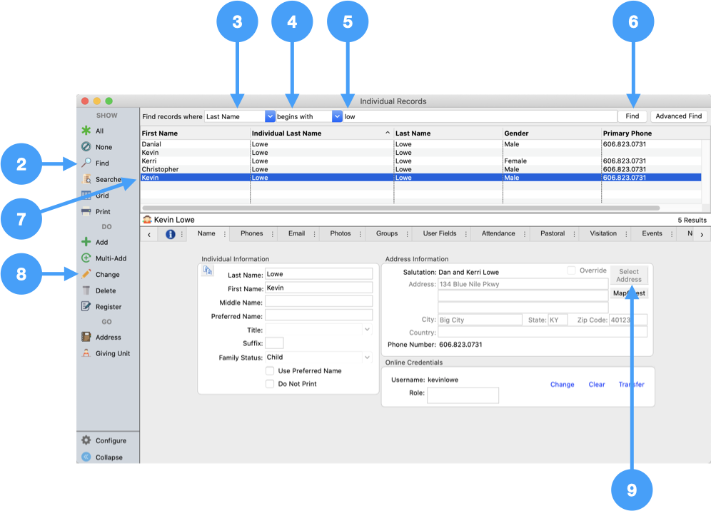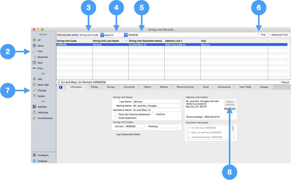 Permission to view and modify Address, Individual, Contribution and Giving Unit records