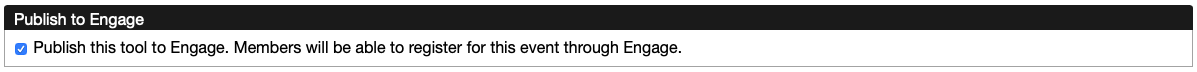 At the bottom of the Publish window, check the box labelled Publish this tool to Engage. This will make the event available to Engage Events users until the registration is closed or passed.