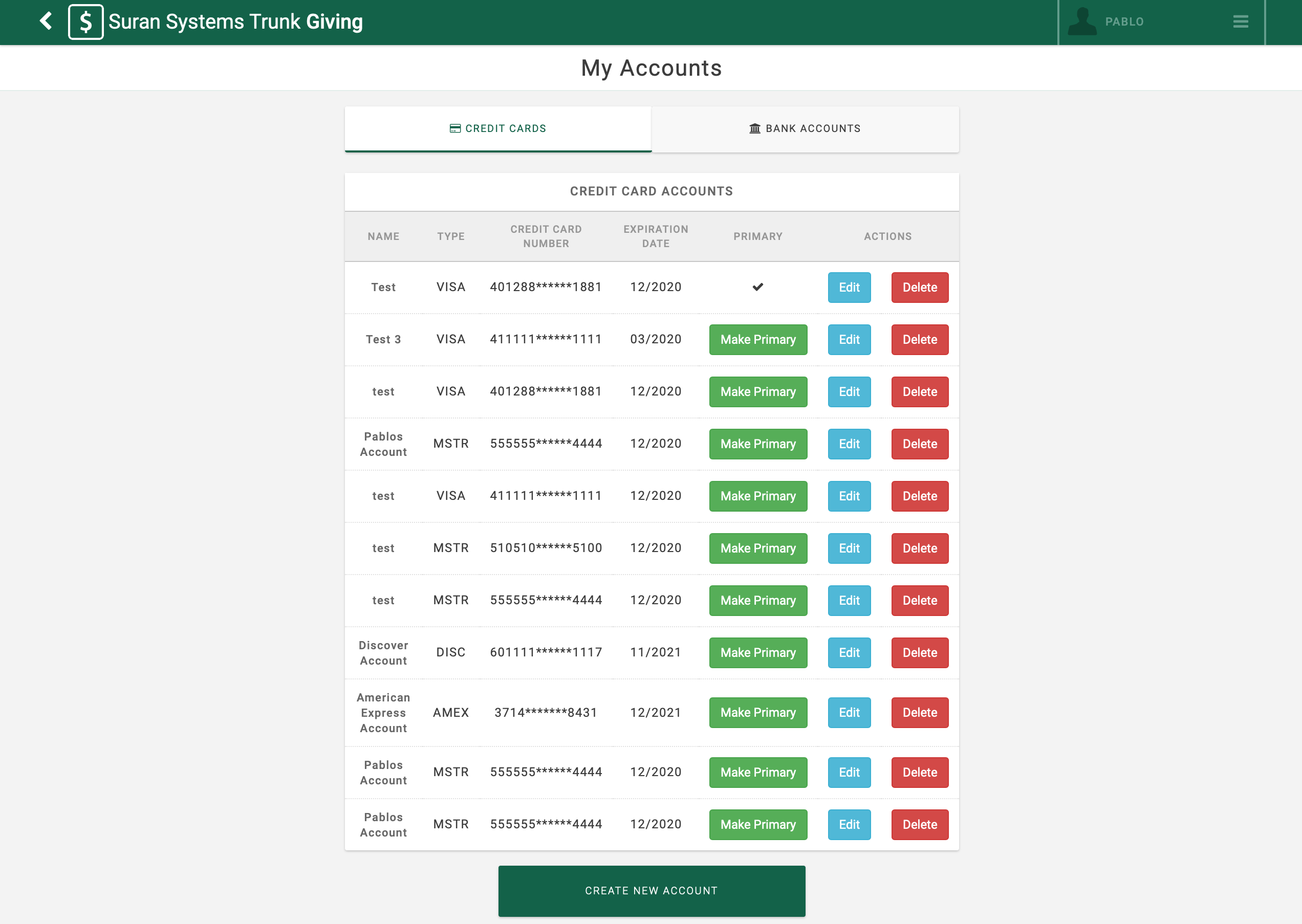 When editing a credit card or bank account you must re-enter the full account number. You can enter a different account number than the one saved, but you cannot change the card type. For example, you can update a VISA card with a new VISA card number, but you cannot change a VISA to a MasterCard.