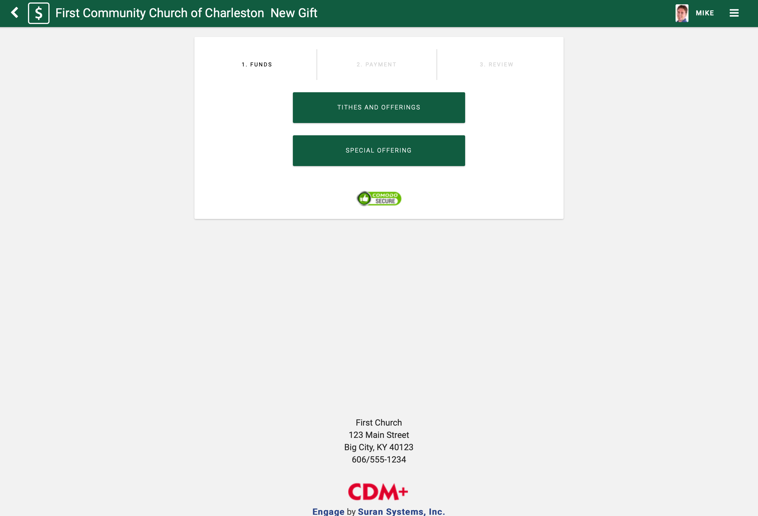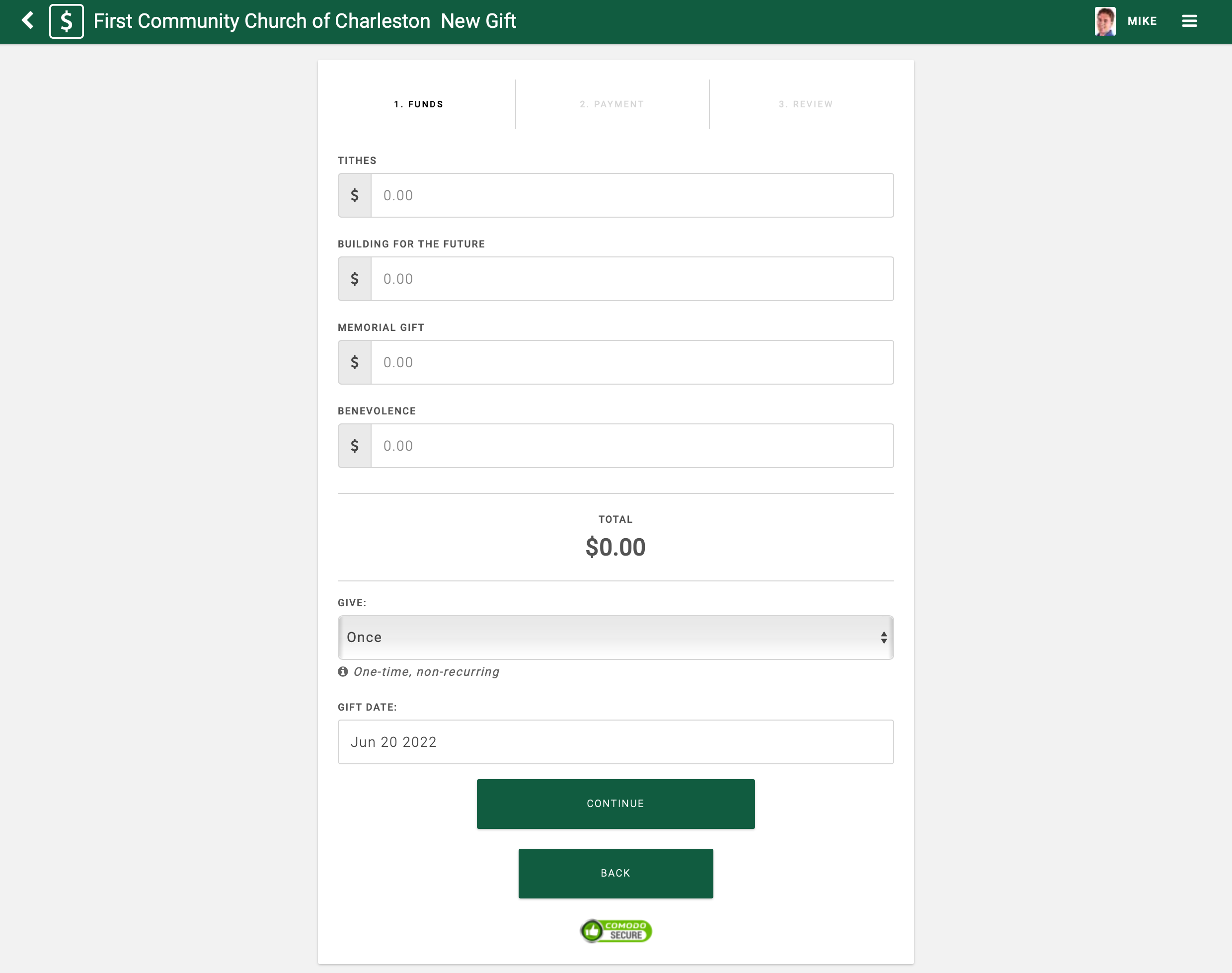 - The New Gift entry screen appears. Select the appropriate giving option.