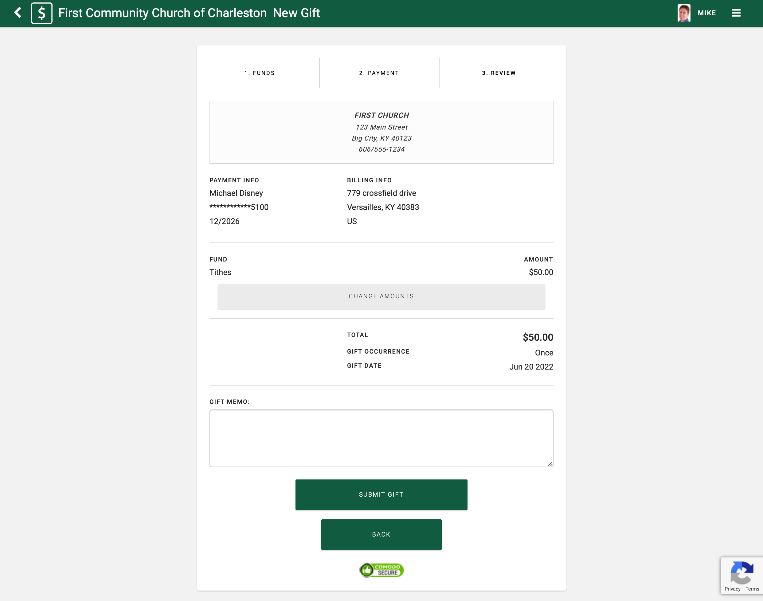 - Click Submit Gift