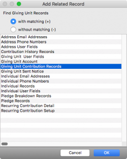 Then on the Related Records tab, add a related record search for matching Giving Unit Contribution Records.