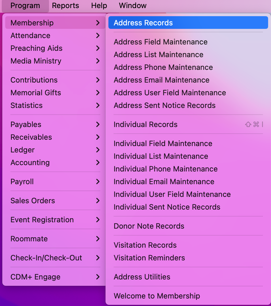 First create an Address record for the new employee. You can do this by going to Program → Membership → Address Records.