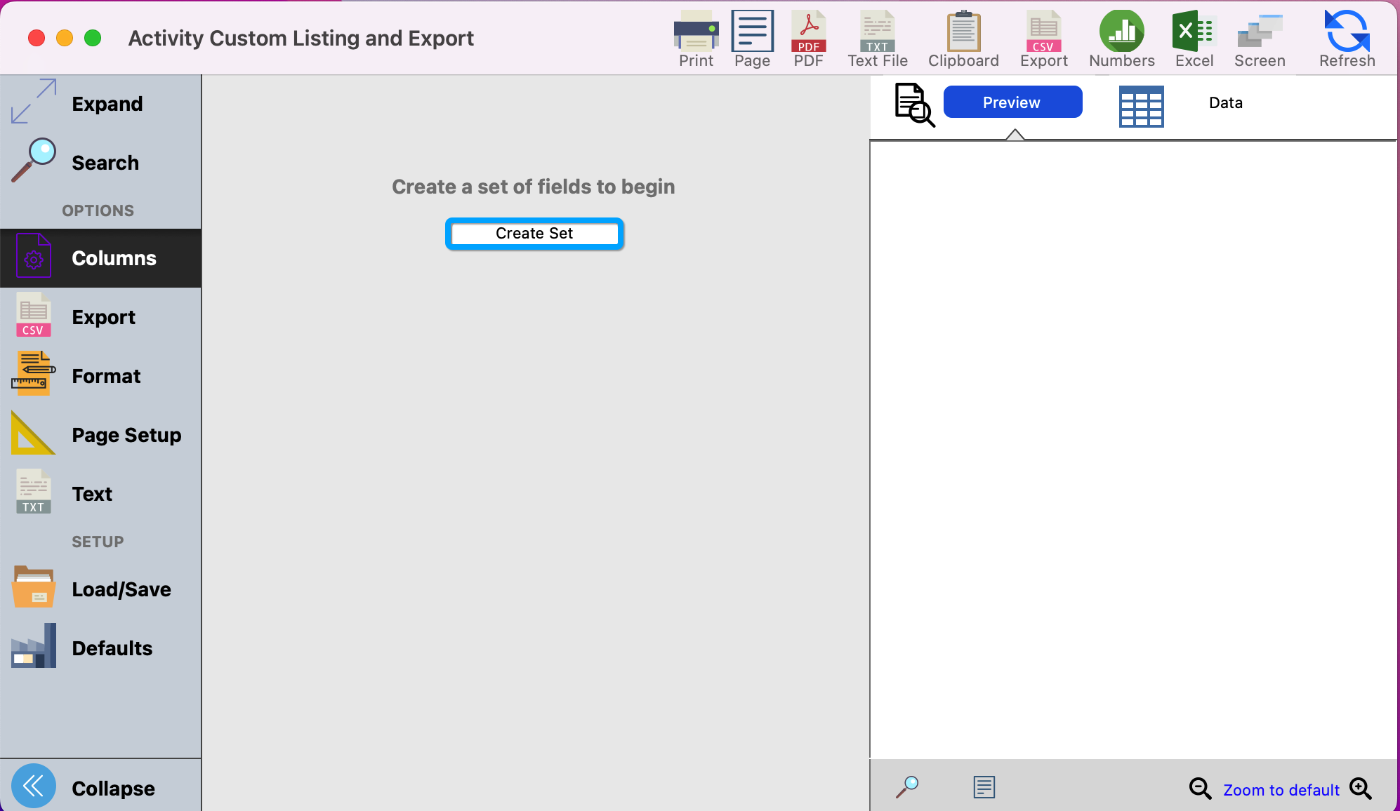 Next, click on Column from the left sidebar. If this is the first Activity Custom Listing and Export that’s been created click on "Create Set". If you see an existing report skip to Step #5.
