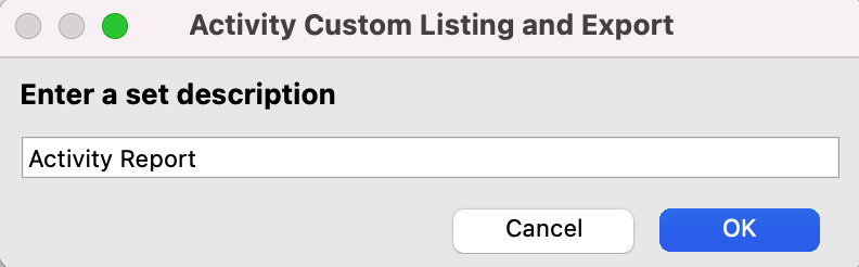 Below is an example of how to create an Activity Custom Listing and Export report but the steps will be the same for each category.