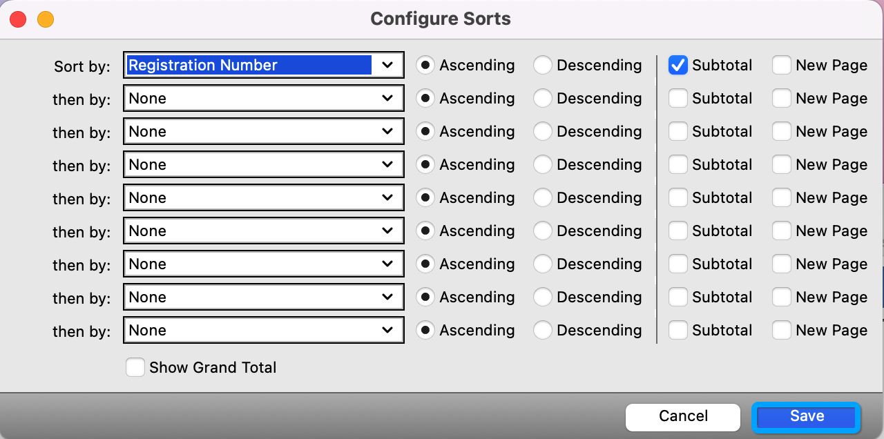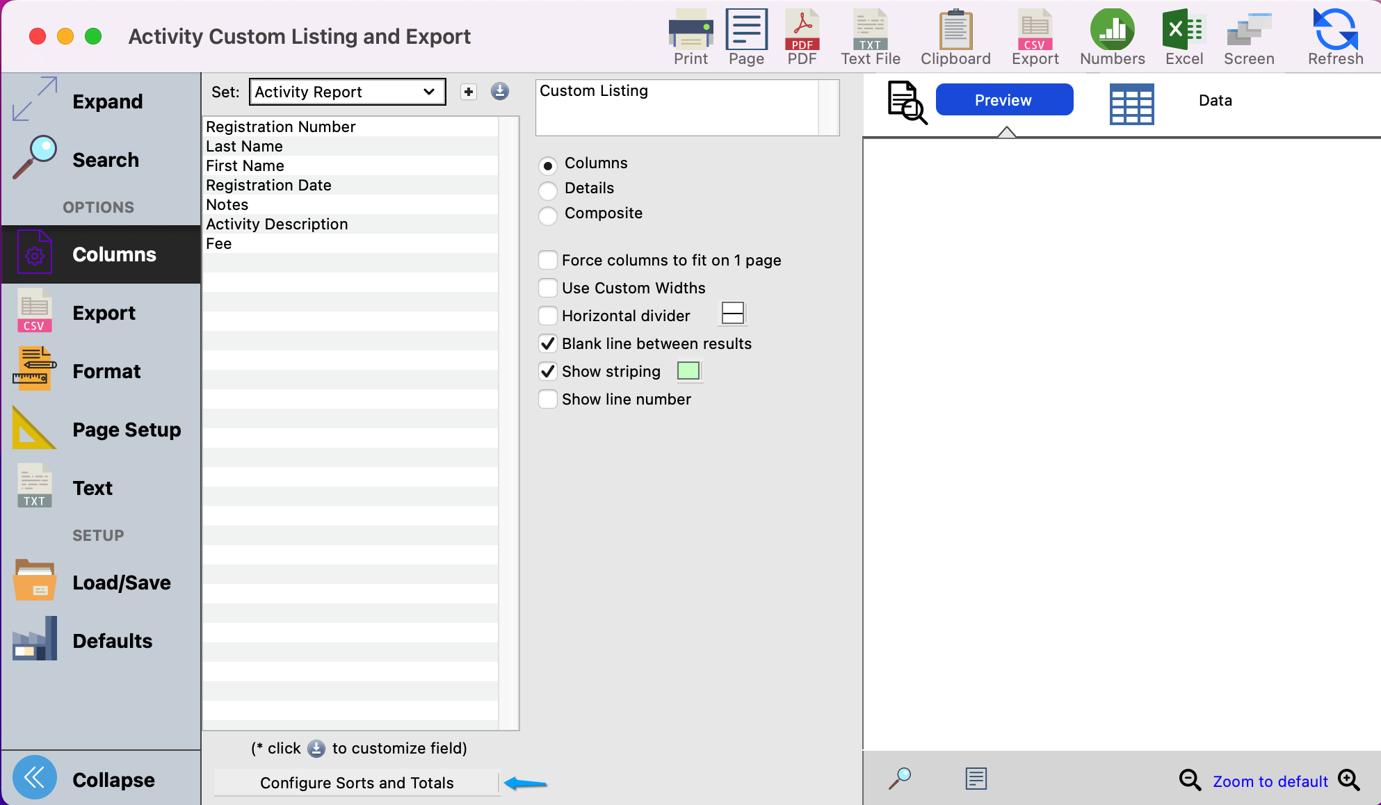 Then, you can click on the "Configure Sorts and Totals" button to decide how you would like to organize this data.