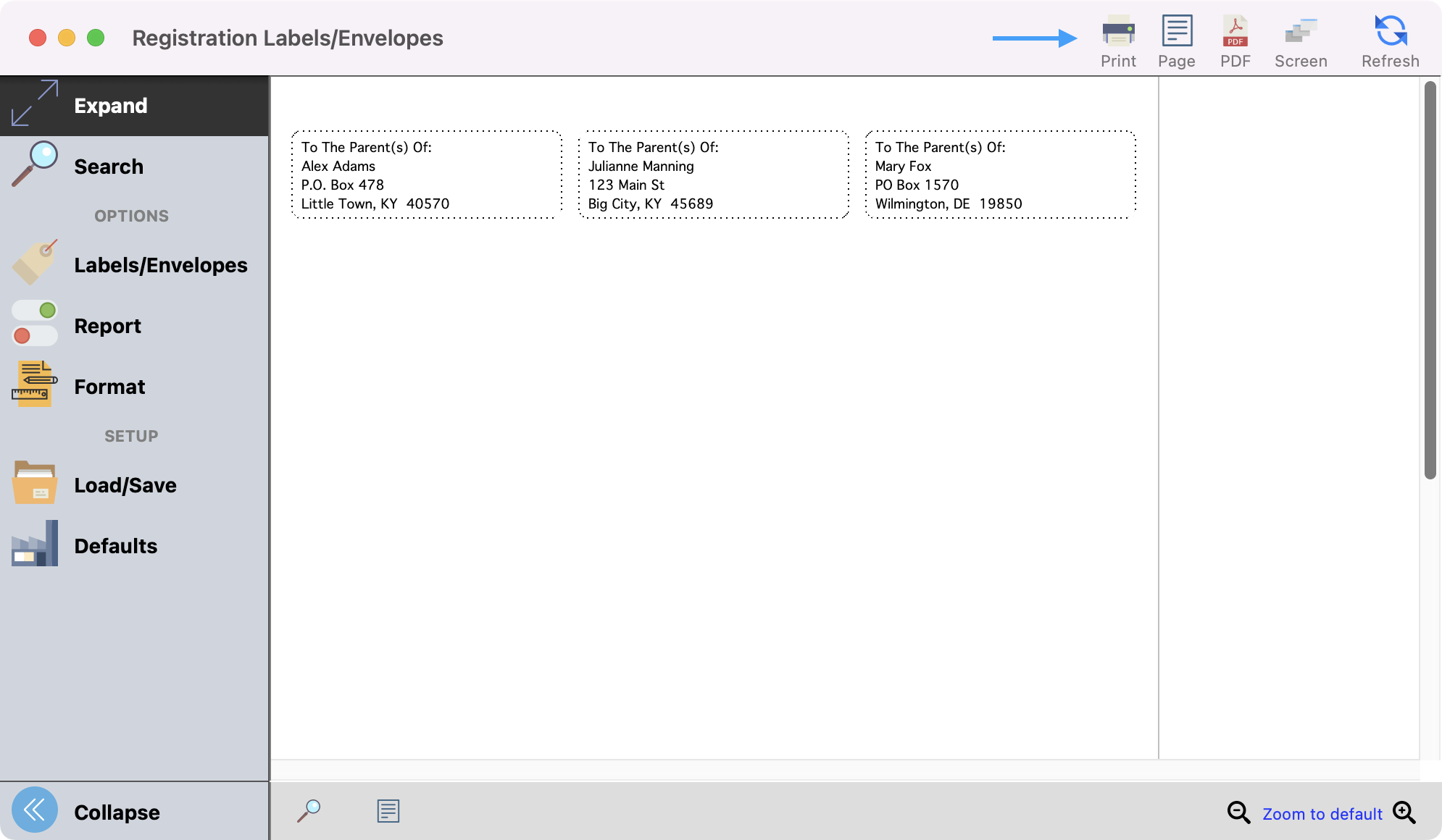 The instructions below show a sample for Registration Labels/Envelopes but the process is the same for Activity Labels/Envelopes.