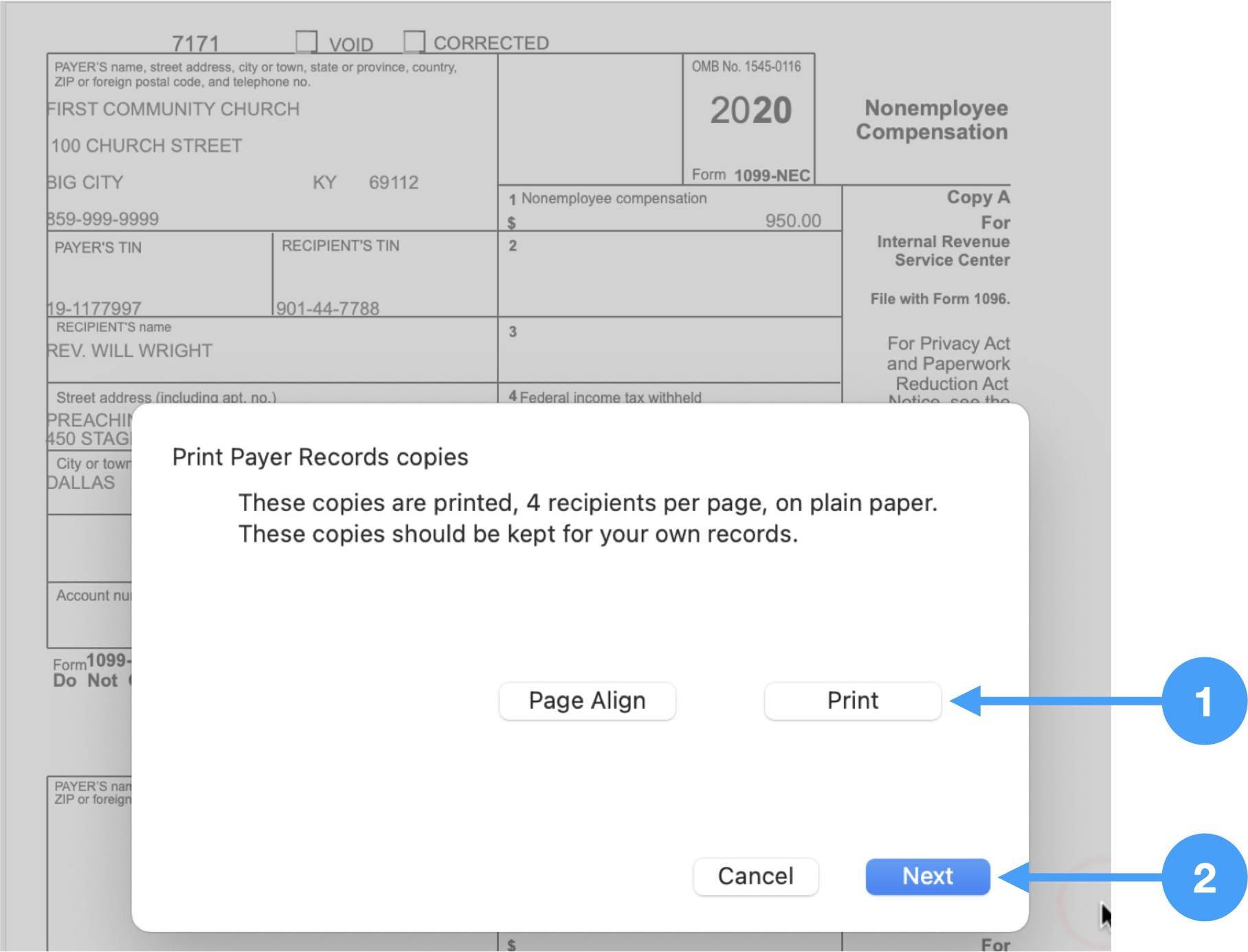 Printing 1099-NEC Forms