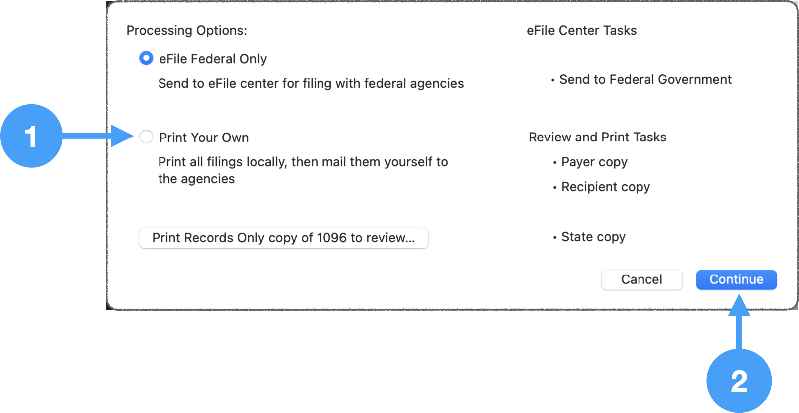 There are four stages to print Forms 1099-NEC and 1096 on macOS: