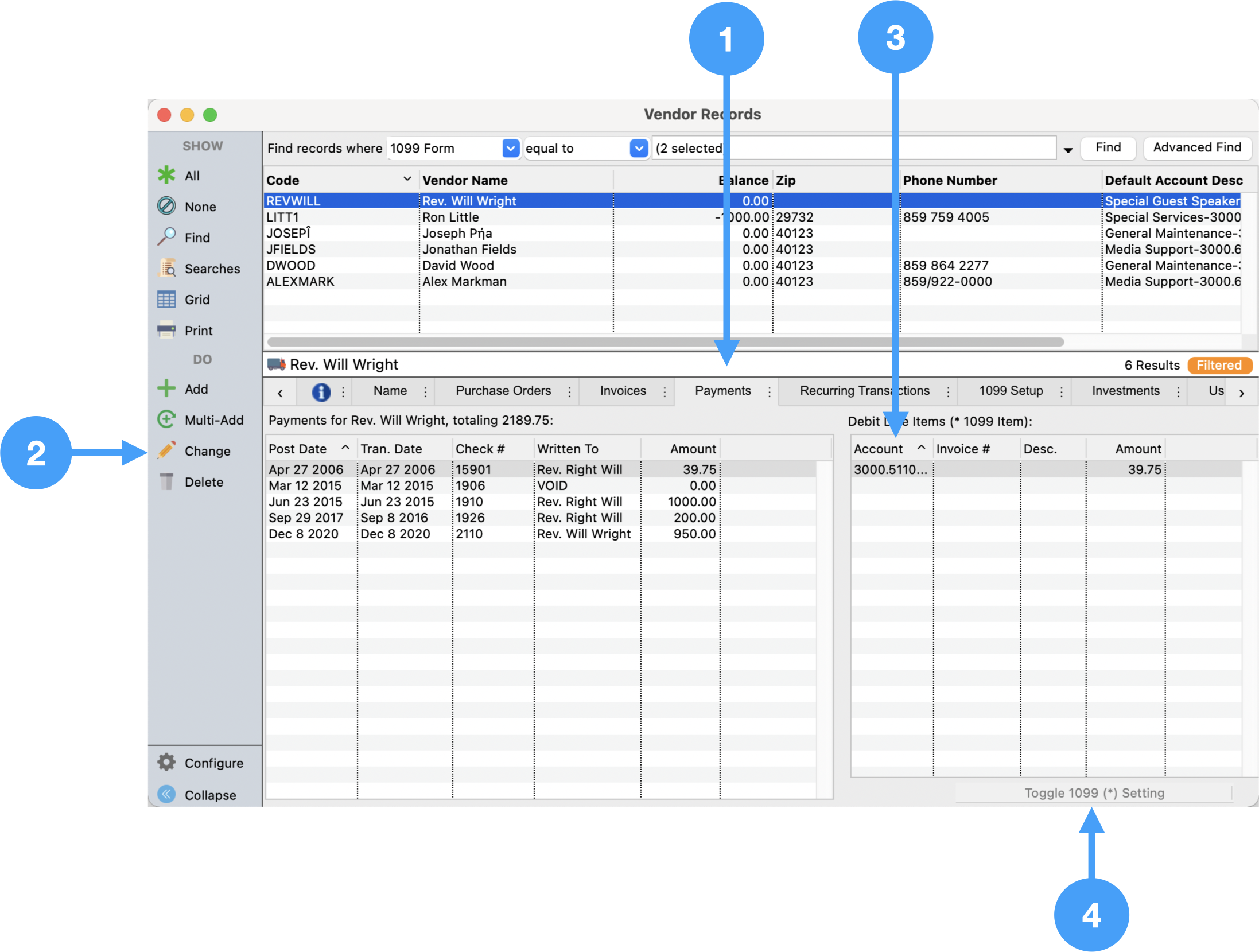 Vendor Records - Payments Tab
