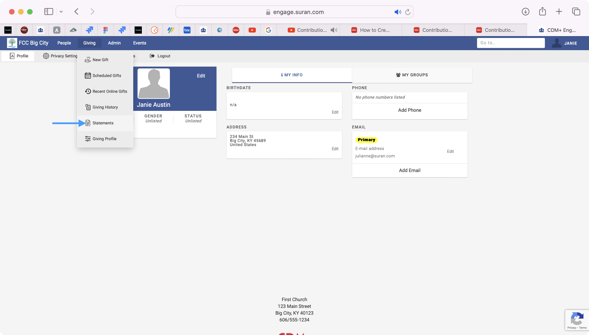 Accessing Online Giving Statements