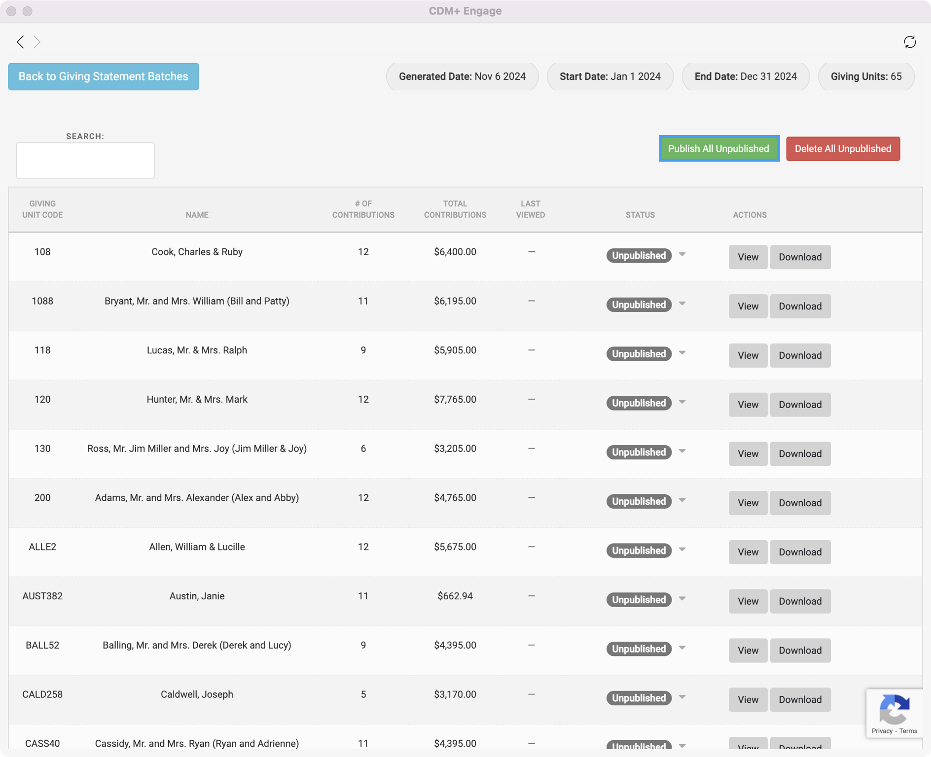 Click Generate Giving Statement Batch button in the upper right of the page.