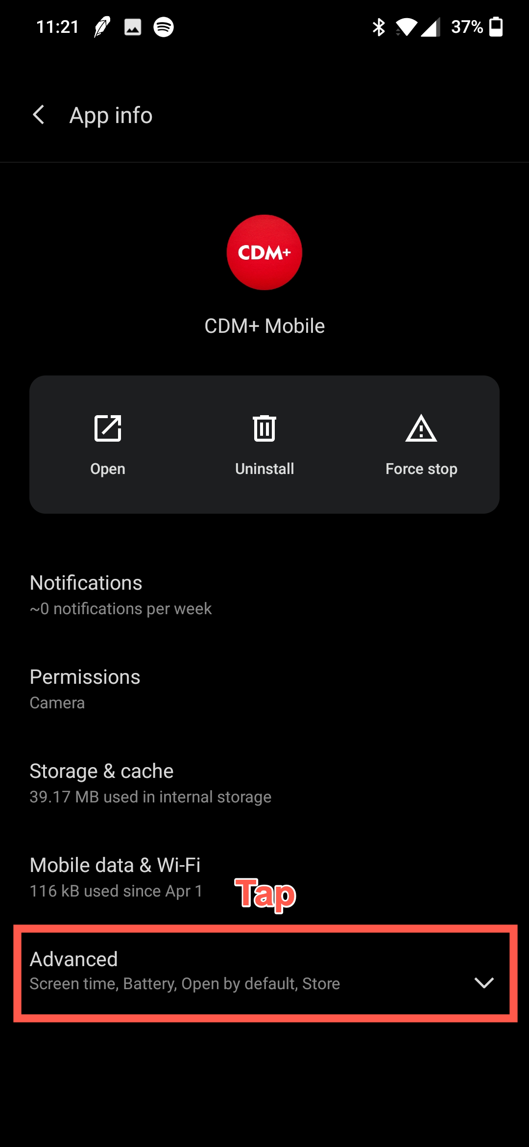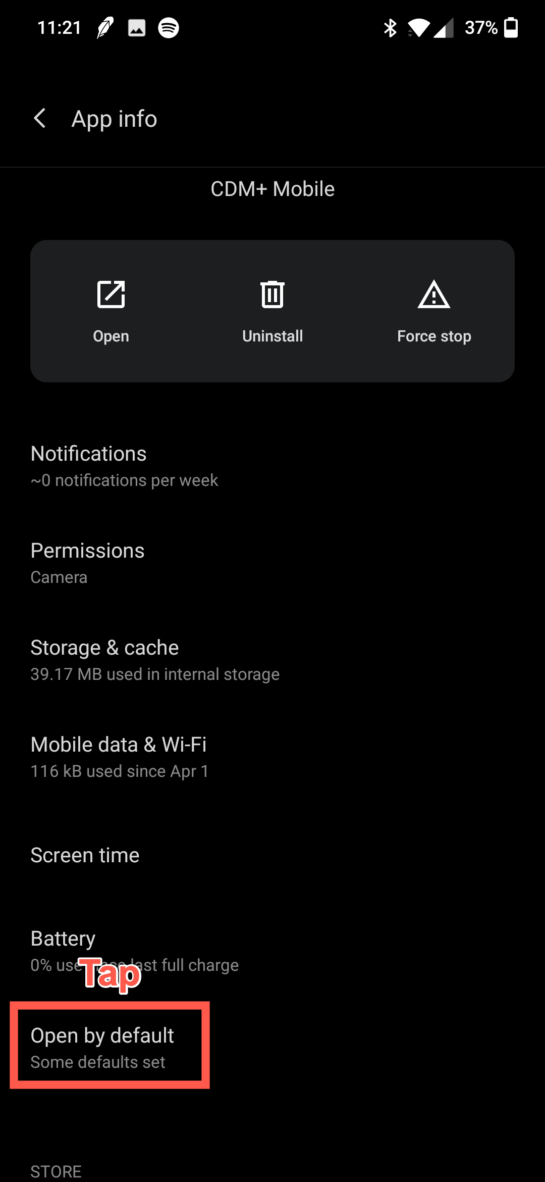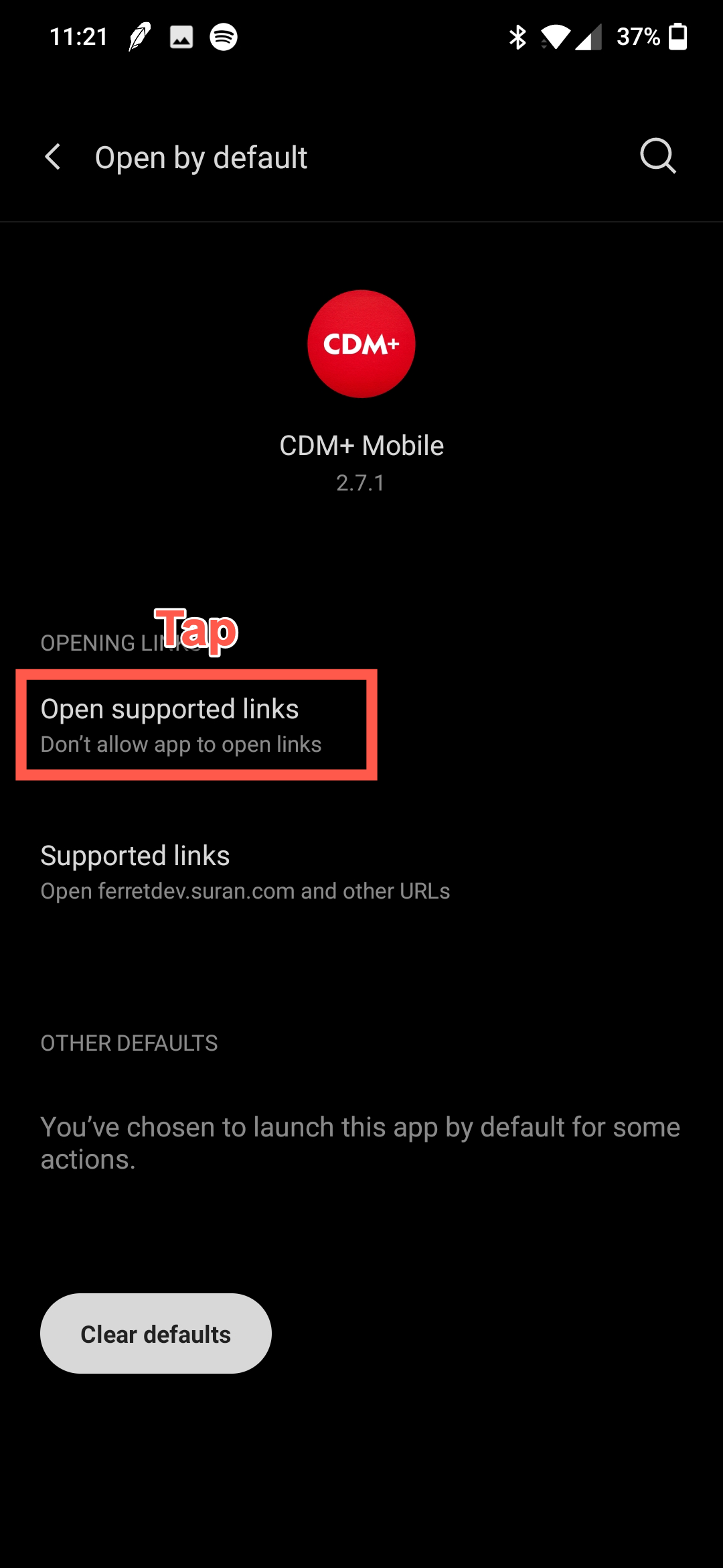 To fix this error, you will need to allow supported links for CDM+ Mobile, under Android app settings. Follow the instructions that follow.