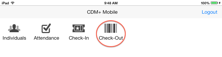 To access Check-Out, log into CDM+ Mobile and, on the Launcher screen, tap the Check-Out icon.