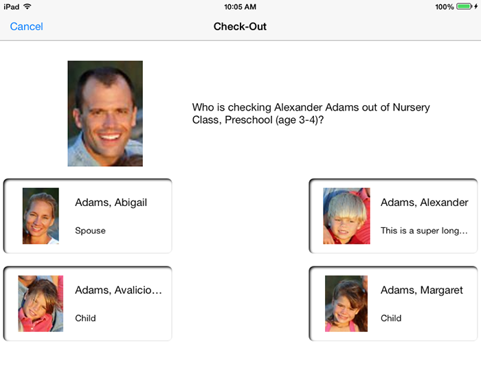 If the two barcodes match, a screen will appear displaying all the people who can check the person out.