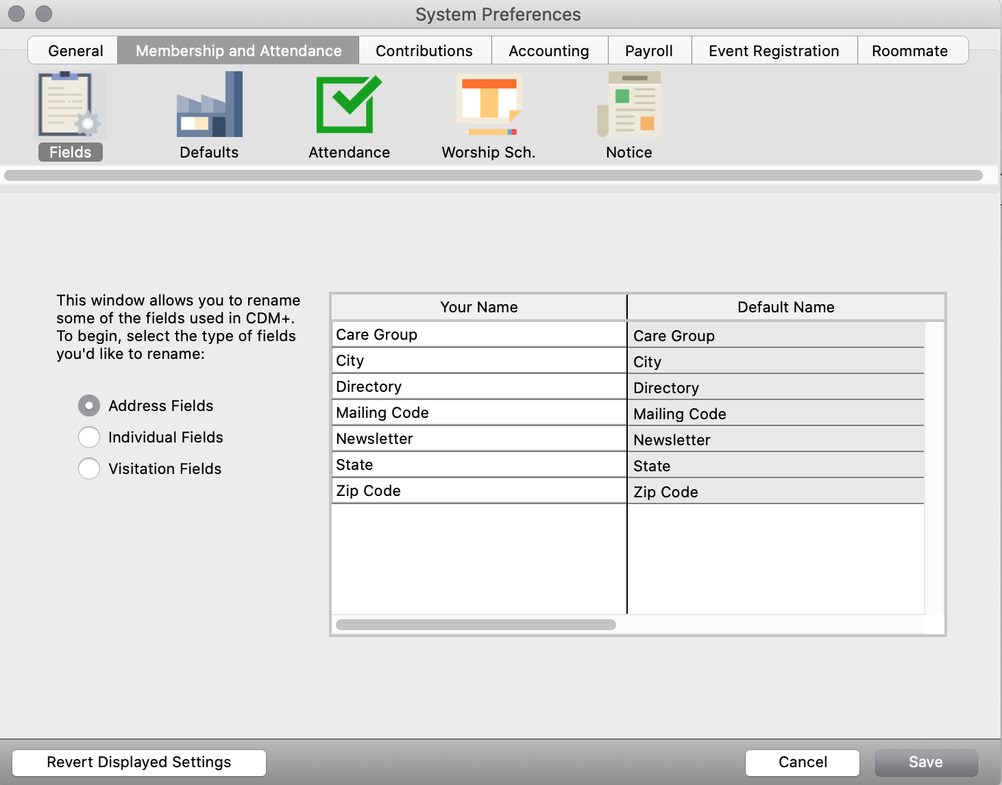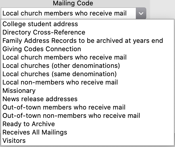 The Care Group field works similarly to the Mailing Code field. This field is designed to assign a code specific to the address. For example, Shepherding Groups or Stewardship Canvassing Teams.