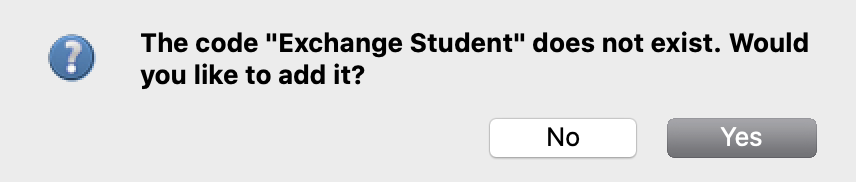 If you have not set up Mailing Codes, or wish to add a new code, you can do it here. Just type the new Mailing Code and either press Return/Enter or click Save. A popup window will appear asking if you want to add the new mailing code. Click on Yes and the new Mailing Code is immediately added to the drop list.