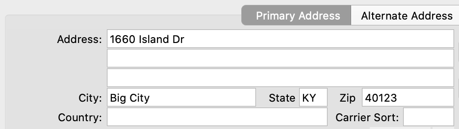 Both the Primary and Alternate Address panes also have the following items: