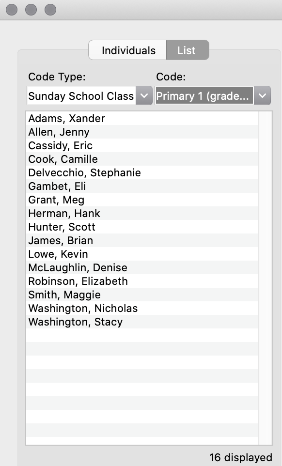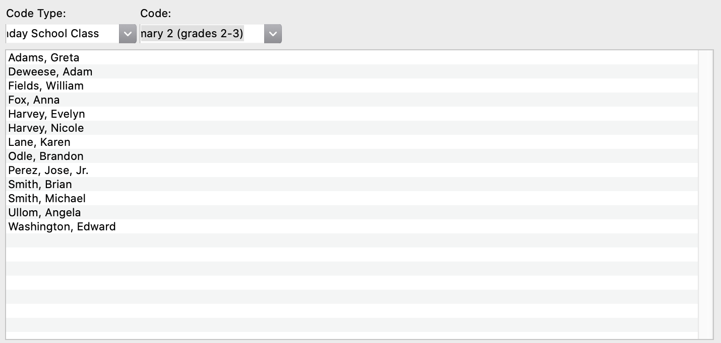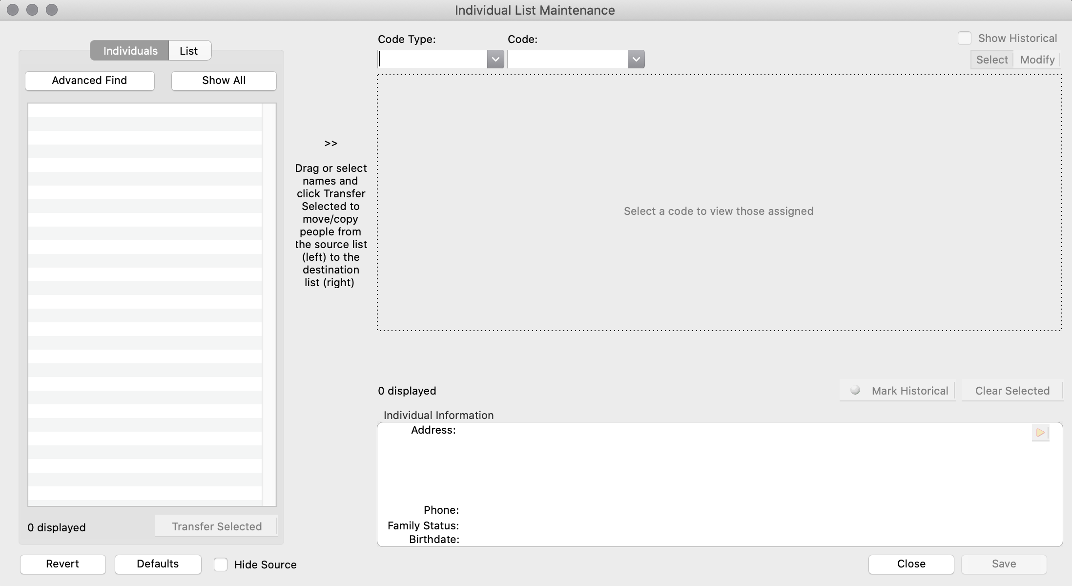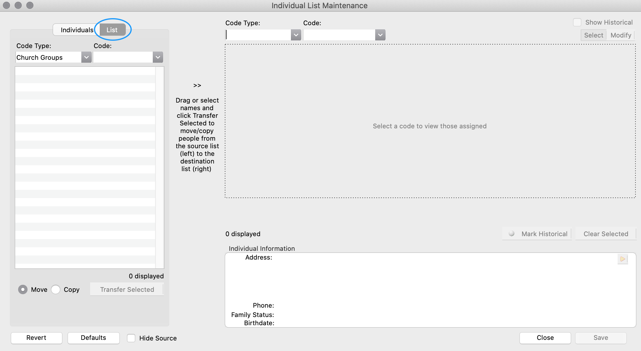 - On the right side of the window, click on the Code Type and Code of the class or group you are transferring individuals into.