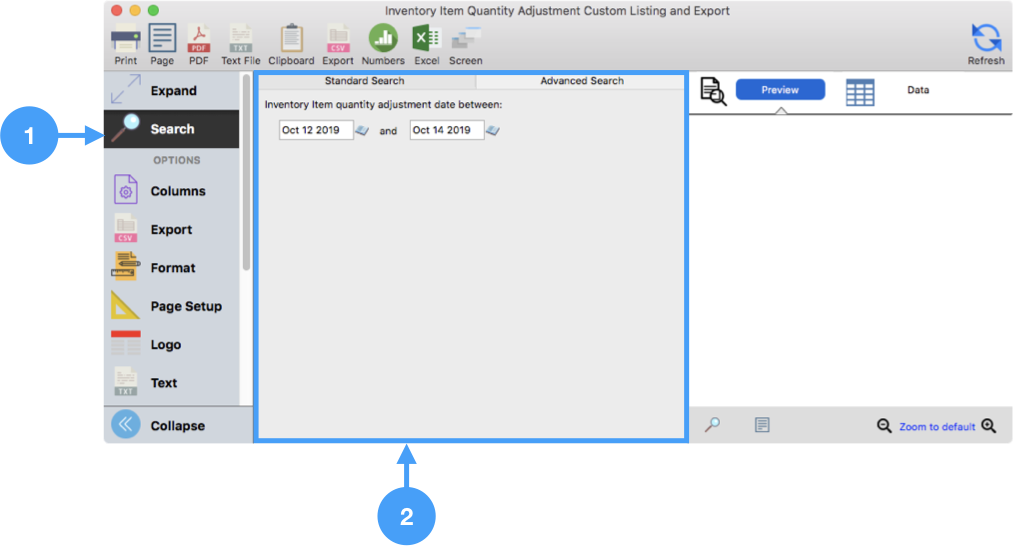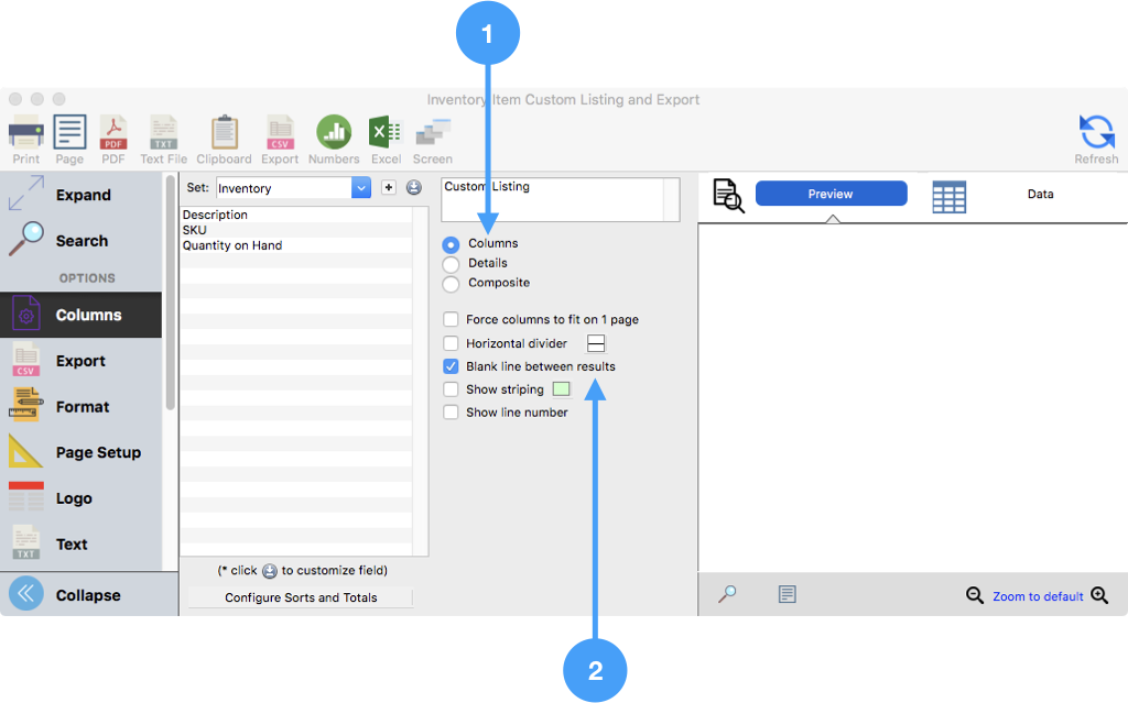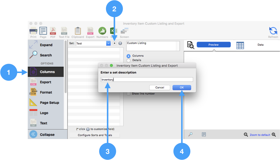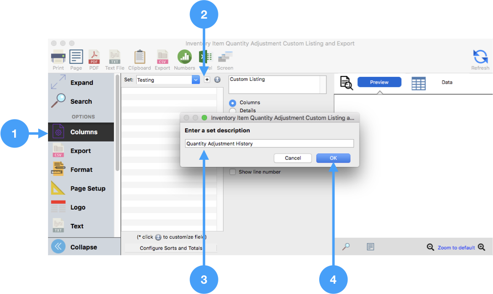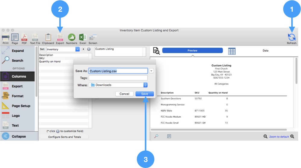 Inventory Item Custom Listing and Export