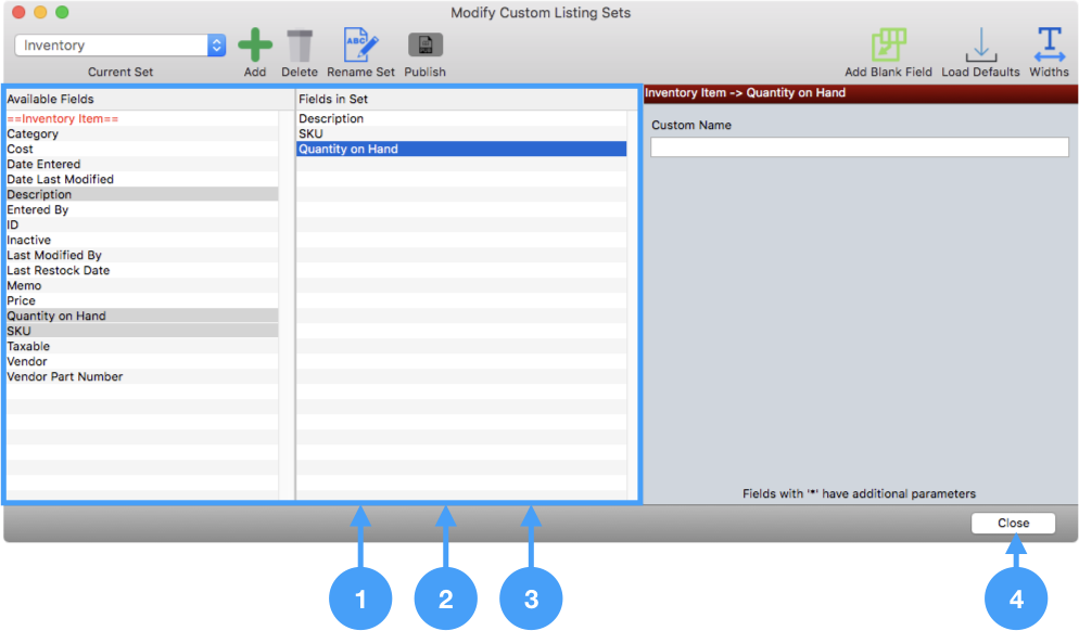 Double-click Quantity on Hand under Available Fields