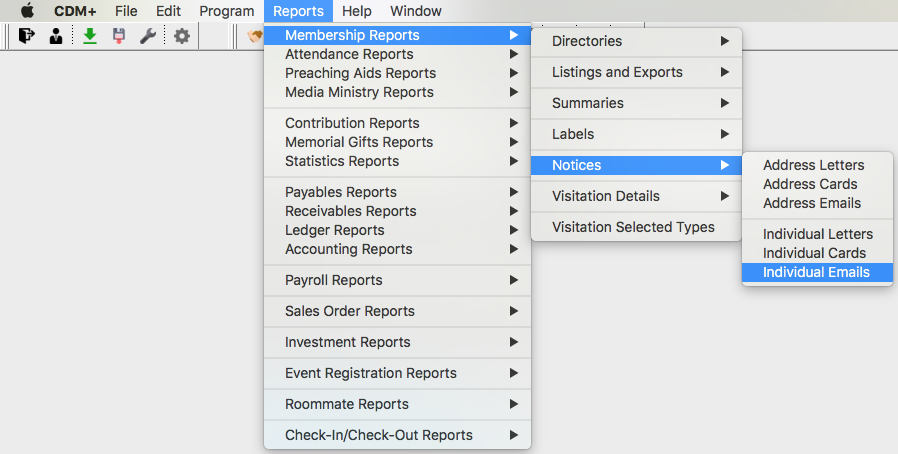 Reports are only accessible in this way If you have specified in Toolbars section of the System Preferences window to display the relevant program toolbars.