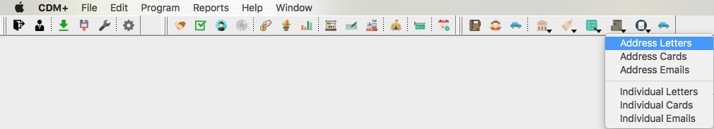 Clicking on the Print button on the left of a record window will bring up a list of available report options.