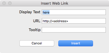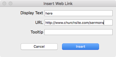 Click Insert to finish. The word will now be underlined and the text will be in blue.