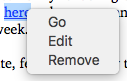 If you wish to remove, edit, or go to the link, click on it, and then select the desired option.