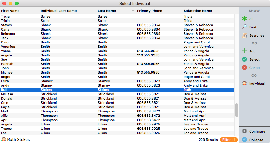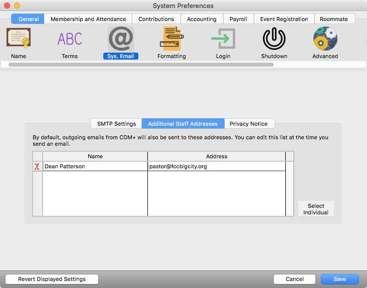 If the staff person you wish to add to the list has an Individual Record in CDM+ Membership, you can add him/her by clicking the Select Individual button.