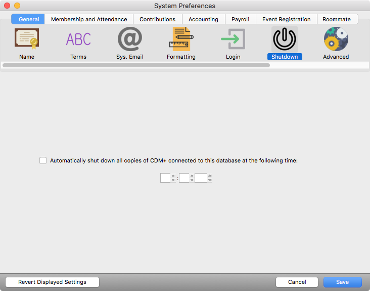 This feature allows you to schedule a time at which all copies of CDM+ using the database will be shutdown. This can be helpful to ensure licenses aren't used unnecessarily and count towards your concurrent license limit.