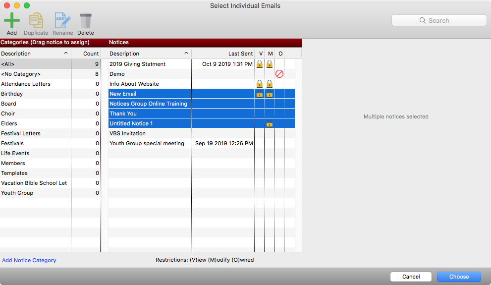To use an existing notice, click it once to highlight it and then click the Choose button.
