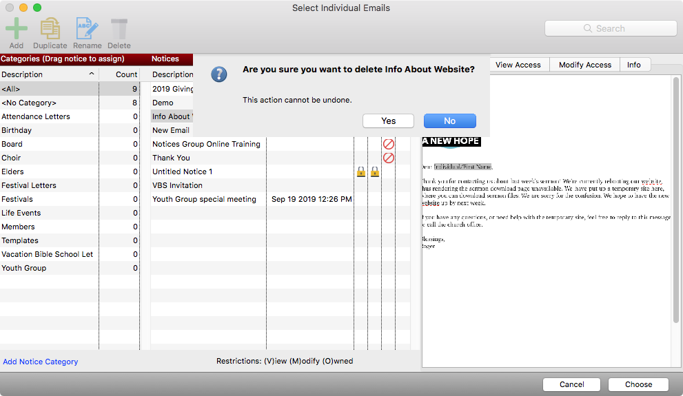 You must have ownership of a notice to be able to delete it. To learn more about ownership, click here.