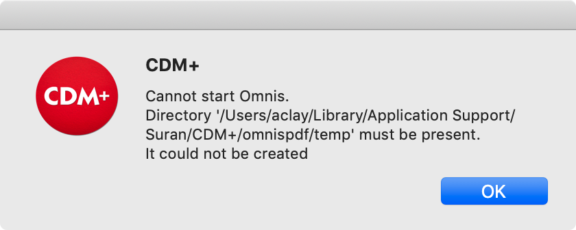 Directory '/Users/[user name]/Library/Application Support/Suran/[porgram name]/omnispdf/temp' must be present.